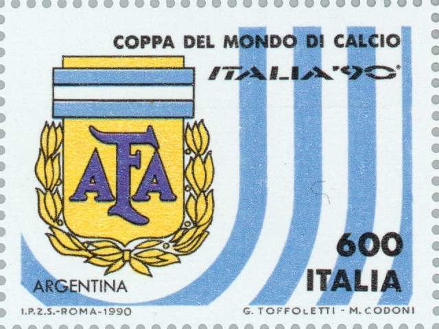 Visibility: public Image owner: none postage 3/24/1990 600(l) multi issue=World Cup 1990 d=Argentina soccer emblem perf=14x13.25 Crops No visible images cropped from this one. Measurements Resolution is unknown. Source Source name: Colnect File URL: http://i.colnect.net/b/177/723/World-Cup-Football-Championship--Argentina.jpg Uploaded September 3, 2014, 6:24 pm by Stan Shebs |