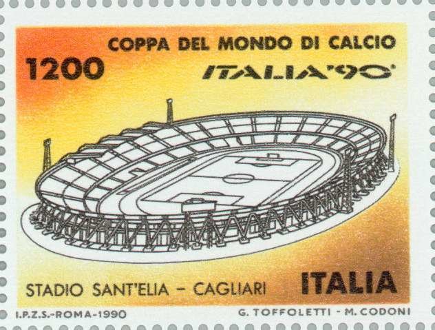 Visibility: public Image owner: none postage 3/24/1990 1200l multi issue=World Cup 1990 d=Cagliari stadium perf=14x13.25 Crops No visible images cropped from this one. Measurements Resolution is unknown. Source Source name: Colnect File URL: http://i.colnect.net/b/177/757/World-Cup-Football-Championship--Cagliari.jpg Uploaded September 3, 2014, 6:24 pm by Stan Shebs |