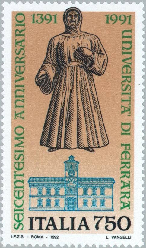 Visibility: public Image owner: none postage 3/4/1992 750(l) multi issue=600th Anniversary of the University of Ferrara unwmk perf=13.25x14 Crops No visible images cropped from this one. Measurements Resolution is unknown. Source Source name: Colnect File URL: http://i.colnect.net/images/b/178/382/University-of-Ferrara.jpg Uploaded September 3, 2014, 6:36 pm by Stan Shebs |