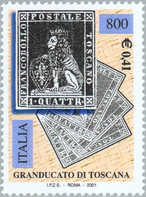 Visibility: public Image owner: none postage 3/31/2001 800(l) multi issue=150th Anniversary of Lombardy and Venetia, Sardinian and Tuscan First Stamps unwmk Crops No visible images cropped from this one. Measurements Resolution is unknown. Source Source name: Colnect File URL: http://i.colnect.net/b/182/398/Tuscany-black-4cr.jpg Uploaded September 3, 2014, 6:52 pm by Stan Shebs |