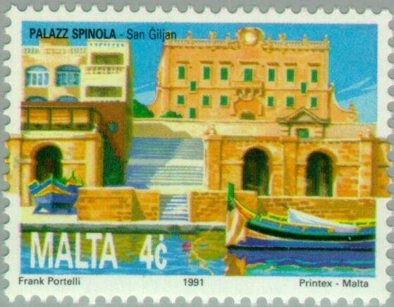 Visibility: public Image owner: none postage 12/9/1991 4c multi issue=1991 dt=Natural and Artistic Heritage of the Maltese Islands d=Spinola Palace (Saint Julian's) wmk=Maltese cross mult Crops No visible images cropped from this one. Measurements Resolution is unknown. Source Source name: Colnect File URL: http://i.colnect.net/b/131/075/Spinola-Palace-St-Julian-s.jpg Uploaded September 3, 2014, 9:29 pm by Stan Shebs |
