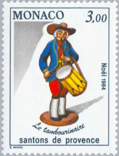 Visibility: public Image owner: none postage 11/8/1984 3.00fr multi issue=Christmas 1984 dt=Crib Figures from Provence d=Drummer unwmk perf=12.5x13 Crops No visible images cropped from this one. Measurements Resolution is unknown. Source Source name: Colnect File URL: http://i.colnect.net/images/b/149/030/Drummer.jpg Uploaded September 3, 2014, 9:36 pm by Stan Shebs |