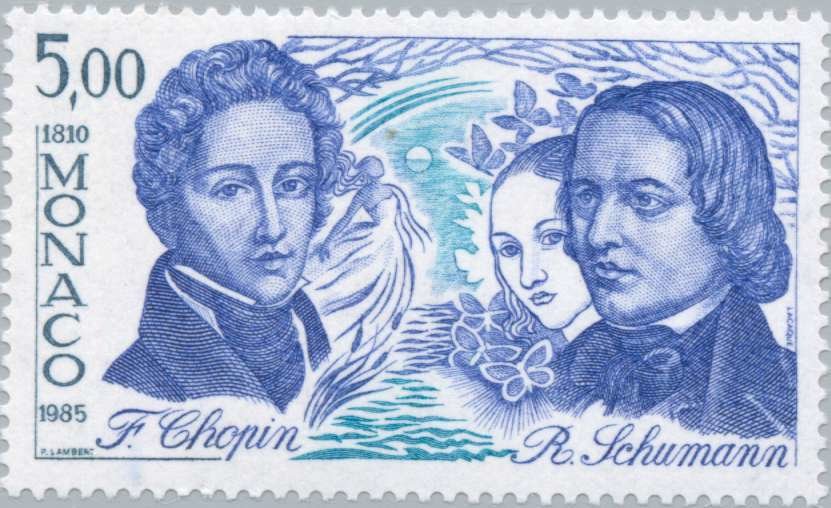 Visibility: public Image owner: none postage 11/7/1985 5.00fr multi issue=175th anniversary of the birth of Frederic Chopin dt=Birth Anniversaries (1985) unwmk perf=13 Crops No visible images cropped from this one. Measurements Resolution is unknown. Source Source name: Colnect File URL: http://i.colnect.net/images/b/149/111/Fr-eacute-d-eacute-ric-Chopin-1810-1849--Robert-Schumann-1810-1856.jpg Uploaded September 3, 2014, 9:52 pm by Stan Shebs |