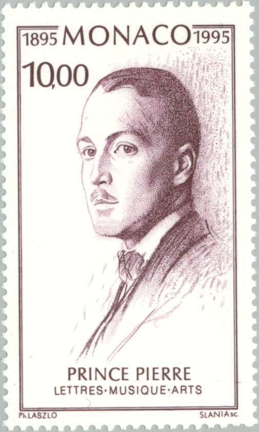 Visibility: public Image owner: none postage 5/8/1995 10.00fr brnvio issue=100th Anniversary of the Birth of Prince Pierre of Monaco d=Prince Pierre unwmk perf=13 Crops No visible images cropped from this one. Measurements Resolution is unknown. Source Source name: Colnect File URL: http://i.colnect.net/images/b/149/747/Prince-Pierre-of-Monaco-1895-1964.jpg Uploaded September 3, 2014, 10:06 pm by Stan Shebs |