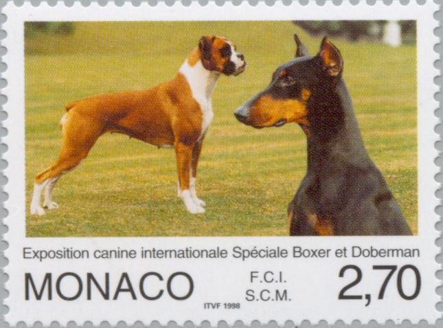 Visibility: public Image owner: none postage 3/19/1998 2.70fr multi issue=International Dog Show 1998 d=Canis familiaris (1998) unwmk Crops No visible images cropped from this one. Measurements Resolution is unknown. Source Source name: Colnect File URL: http://i.colnect.net/images/b/149/956/German-Boxer-Doberman-Pinscher-Canis-lupus-familiaris.jpg Uploaded September 3, 2014, 10:10 pm by Stan Shebs |