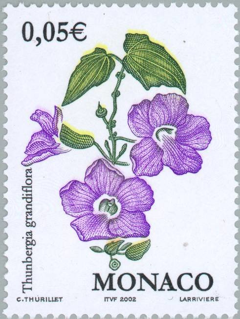 Visibility: public Image owner: none postage 1/1/2002 0,05€ multi d=Thunbergia grandiflora (2002) unwmk perf=13.4 Crops No visible images cropped from this one. Measurements Resolution is unknown. Source Source name: Colnect File URL: http://i.colnect.net/b/150/160/Blue-Skyflower-Thunbergia-grandiflora.jpg Uploaded September 3, 2014, 10:27 pm by Stan Shebs |