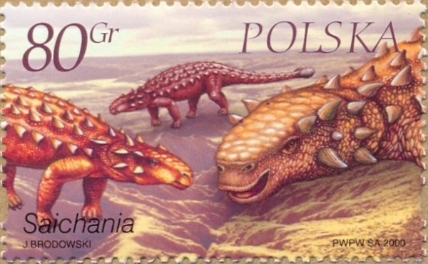 Visibility: public Image owner: none postage 3/24/2000 80gr multi issue=Dinosaurs 2000 dt=dinosaurs (2000 Poland) d=Saichania unwmk perf=Syncopated 11.75x11.5 Crops No visible images cropped from this one. Measurements Resolution is unknown. Source Source name: Colnect File URL: http://i.colnect.net/images/b/731/826/Saichania.jpg Uploaded September 4, 2014, 1:44 pm by Stan Shebs |