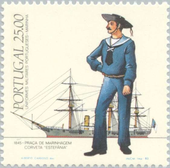 Visibility: public Image owner: none postage 2/23/1983 25.00e multi issue=Portuguese Military Uniform - Navy dt=Portuguese Navy uniforms unwmk Crops No visible images cropped from this one. Measurements Resolution is unknown. Source Source name: Colnect File URL: http://i.colnect.net/b/175/688/Military-uniforms.jpg Uploaded September 4, 2014, 1:52 pm by Stan Shebs |