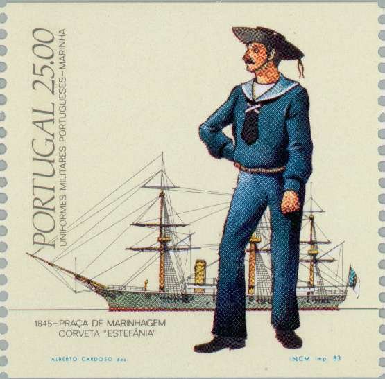 Visibility: public Image owner: none postage 2/23/1983 25.00e multi issue=Portuguese Military Uniform - Navy dt=Portuguese Navy uniforms unwmk Crops No visible images cropped from this one. Measurements Resolution is unknown. Source Source name: Colnect File URL: http://i.colnect.net/b/175/693/Military-uniforms-booklet-stamp.jpg Uploaded September 4, 2014, 1:52 pm by Stan Shebs |