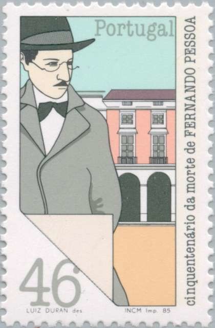 Visibility: public Image owner: none postage 10/2/1985 46.00e multi issue=Fernando Pessoa death 50th unwmk perf=11.75x12 Crops No visible images cropped from this one. Measurements Resolution is unknown. Source Source name: Colnect File URL: http://i.colnect.net/b/176/293/Fernando-Pessoa.jpg Uploaded September 4, 2014, 1:58 pm by Stan Shebs |