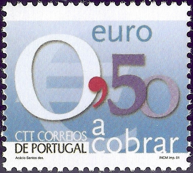 Visibility: public Image owner: none postage 1/2/2002 0.50€ multi issue=Taxa a cobrar unwmk Crops No visible images cropped from this one. Measurements Resolution is unknown. Source Source name: Colnect File URL: http://i.colnect.net/images/b/1399/139/Euro-Symbol.jpg Uploaded September 4, 2014, 3:45 pm by Stan Shebs |