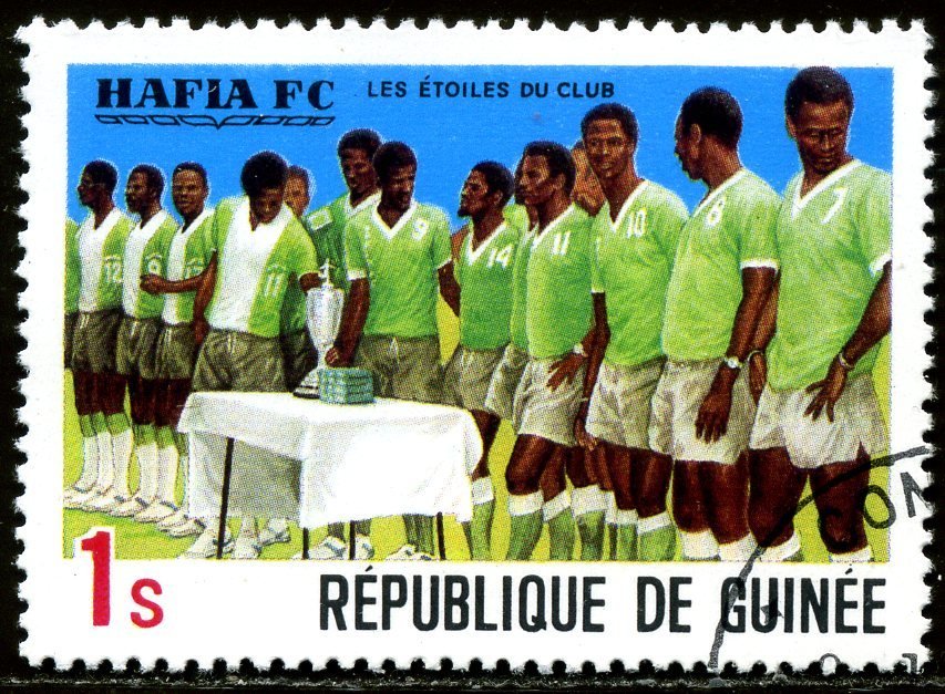 Visibility: public Image owner: none postage 12/18/1979 1s multi issue=Hafla Football Club's Victories d=Hafia Soccer Team unwmk perf=12.25x12 Crops No visible images cropped from this one. Measurements Resolution is unknown. Source Source name: Colnect File URL: http://i.colnect.net/b/1504/712/Hafia-Soccer-Team.jpg Uploaded September 4, 2014, 4:17 pm by Stan Shebs |