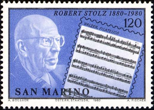 Visibility: public Image owner: none postage 9/18/1980 120l multi issue=Robert Stolz 100th d=Robert Stolz unwmk Crops No visible images cropped from this one. Measurements Resolution is unknown. Source Source name: Colnect File URL: http://i.colnect.net/b/1393/141/Robert-Stolz-1880-1975-composer.jpg Uploaded September 4, 2014, 6:16 pm by Stan Shebs |