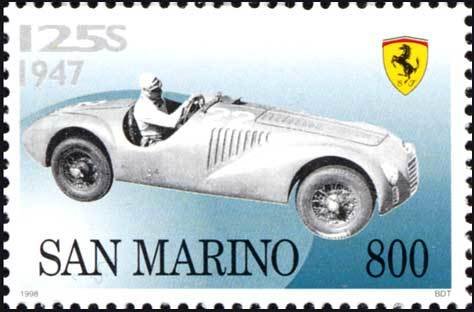 Visibility: public Image owner: none postage 3/31/1998 800l multi issue=50th Anniversary of Ferrari d=Ferrari 125S 1947 unwmk Crops No visible images cropped from this one. Measurements Resolution is unknown. Source Source name: Colnect File URL: http://i.colnect.net/b/1080/143/Ferrari-125S-1947.jpg Uploaded September 4, 2014, 6:36 pm by Stan Shebs |