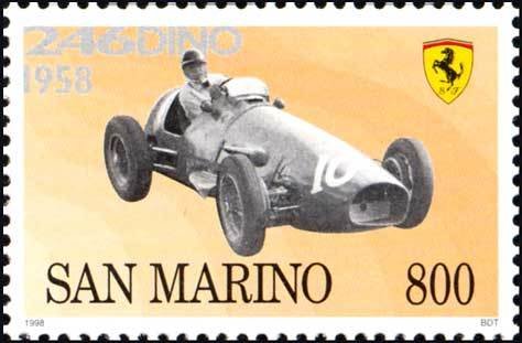 Visibility: public Image owner: none postage 3/31/1998 800l multi issue=50th Anniversary of Ferrari d=Ferrari 246 1958 unwmk Crops No visible images cropped from this one. Measurements Resolution is unknown. Source Source name: Colnect File URL: http://i.colnect.net/b/1080/649/Ferrari-246-1958.jpg Uploaded September 4, 2014, 6:36 pm by Stan Shebs |