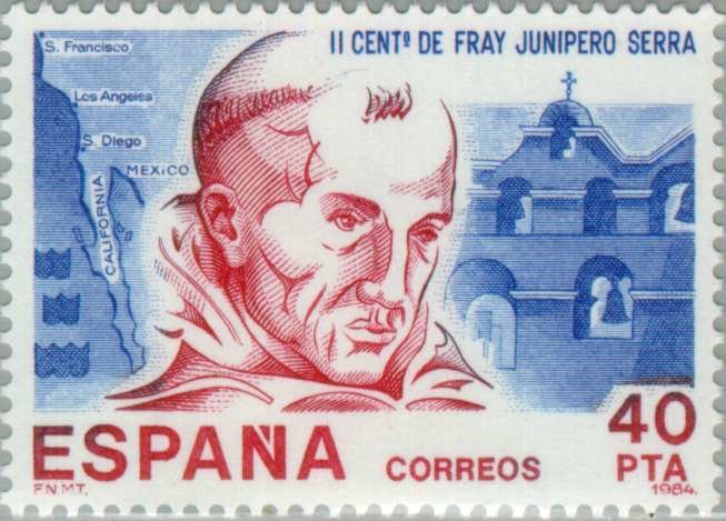 Visibility: public Image owner: none postage 10/12/1984 40pta bl&car issue=Hispanidad 1984 / 2nd centenary of the death of Friar Junipero Serra unwmk perf=13.25 Crops No visible images cropped from this one. Measurements Resolution is unknown. Source Source name: Colnect File URL: http://i.colnect.net/b/176/085/2nd-centenary-of-the-death-of-Friar-Junipero-Serra.jpg Uploaded June 9, 2013, 11:51 pm by Stan Shebs |