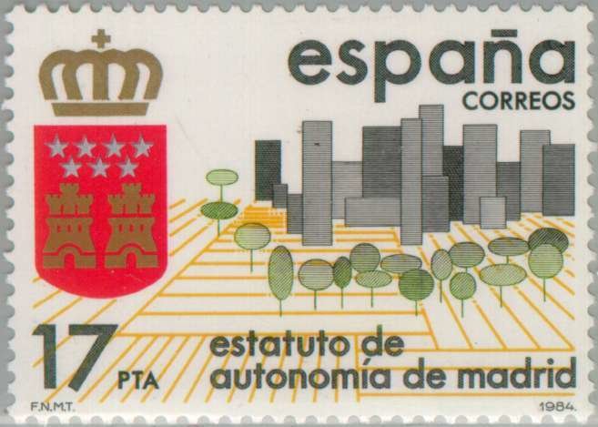 Visibility: public Image owner: none postage 11/28/1984 17p multi issue=Madrid Autonomy Statute unwmk perf=13.25 Crops No visible images cropped from this one. Measurements Resolution is unknown. Source Source name: Colnect File URL: http://i.colnect.net/b/176/090/Autonomy-of-Madrid.jpg Uploaded September 4, 2014, 7:04 pm by Stan Shebs |