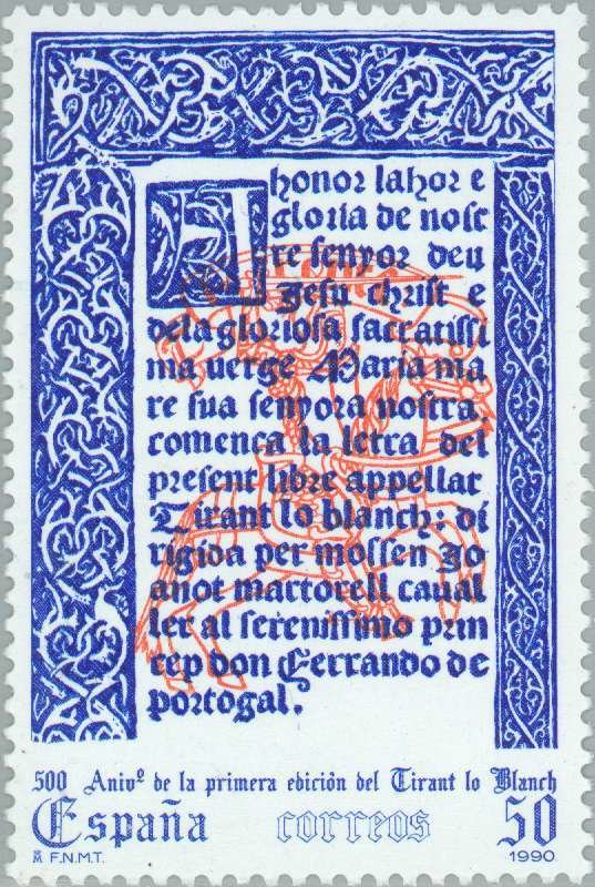 Visibility: public Image owner: none postage 6/19/1990 50pta issue=500th Anniversary of Novel Tiran to Blanch by Joanot Martorell unwmk perf=12.75 Crops No visible images cropped from this one. Measurements Resolution is unknown. Source Source name: Colnect File URL: http://i.colnect.net/b/177/937/Novel--Tirant-lo-Blanch-.jpg Uploaded June 10, 2013, 12:46 am by Stan Shebs |