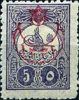 Type: stamp Issuer: Turkey Date: 1915 Denom: 5pi