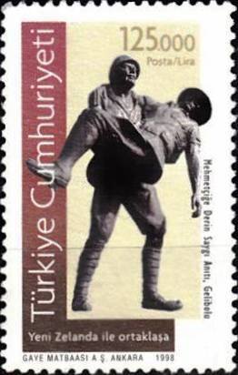 Visibility: public Image owner: none postage 3/18/1998 125000l multi issue=Commemoration of the Battle for the Dardanelles dt=War Memorials (1998) d=Respect to Mehmetçik Monument unwmk perf=13x13.25 Crops No visible images cropped from this one. Measurements Resolution is unknown. Source Source name: Colnect File URL: http://i.colnect.net/b/776/034/Turkish-soldier-carrying-wounded-ANZAC-Monument-by-Tankut-O.jpg Uploaded September 4, 2014, 8:19 pm by Stan Shebs |