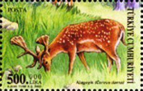 Visibility: public Image owner: none postage 6/5/2003 500000l multi issue=World Environment Day 2003 d=Cervus dama unwmk perf=13.25 Crops No visible images cropped from this one. Measurements Resolution is unknown. Source Source name: Colnect File URL: http://i.colnect.net/b/965/321/Fallow-Deer-Cervus-dama.jpg Uploaded September 4, 2014, 8:26 pm by Stan Shebs |