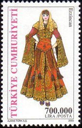 Visibility: public Image owner: none postage 7/8/2003 700000l multi dt=Women's Regional Costumes d=Woman from Erzincan unwmk perf=13 Crops No visible images cropped from this one. Measurements Resolution is unknown. Source Source name: Colnect File URL: http://i.colnect.net/b/965/326/Woman-from-Erzincan.jpg Uploaded September 4, 2014, 8:26 pm by Stan Shebs |
