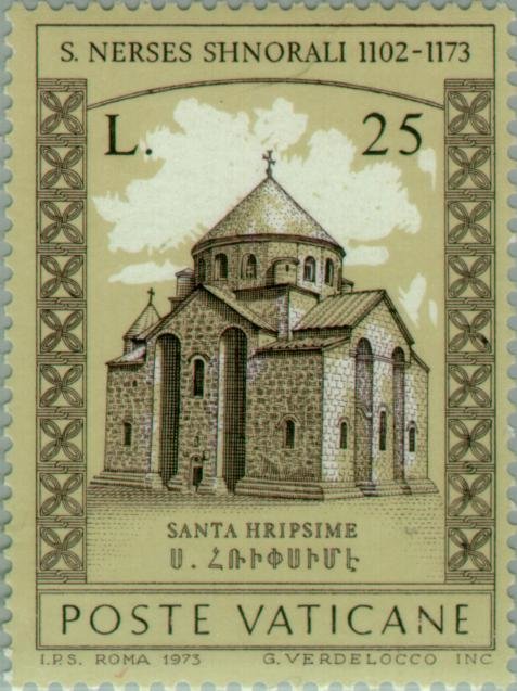 Visibility: public Image owner: none postage 11/27/1973 25l brn&blk issue=800th Anniversary of the Death of Narses Shnoralis unwmk perf=13.5x14 Crops No visible images cropped from this one. Measurements Resolution is unknown. Source Source name: Colnect File URL: http://i.colnect.net/b/151/059/Church-of-SHripsime.jpg Uploaded June 10, 2013, 9:29 pm by Stan Shebs |
