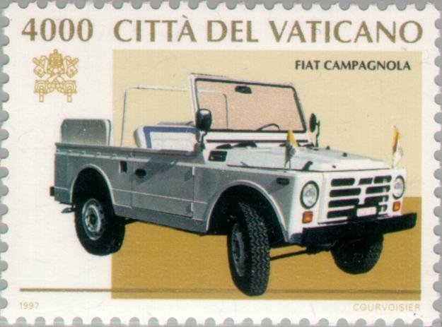 Visibility: public Image owner: none postage 3/20/1997 4000(l) multi dt=Popemobiles unwmk perf=11.75x12 Crops No visible images cropped from this one. Measurements Resolution is unknown. Source Source name: Colnect File URL: http://i.colnect.net/b/151/781/Fiat-Campagnola.jpg Uploaded September 4, 2014, 8:49 pm by Stan Shebs |