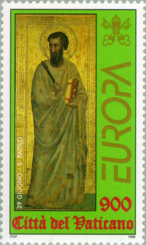 Visibility: public Image owner: none postage 3/24/1998 900(l) multi issue=St. Peter & St. Paul unwmk perf=13 Crops No visible images cropped from this one. Measurements Resolution is unknown. Source Source name: Colnect File URL: http://i.colnect.net/b/151/828/St-Paul.jpg Uploaded June 10, 2013, 10:41 pm by Stan Shebs |