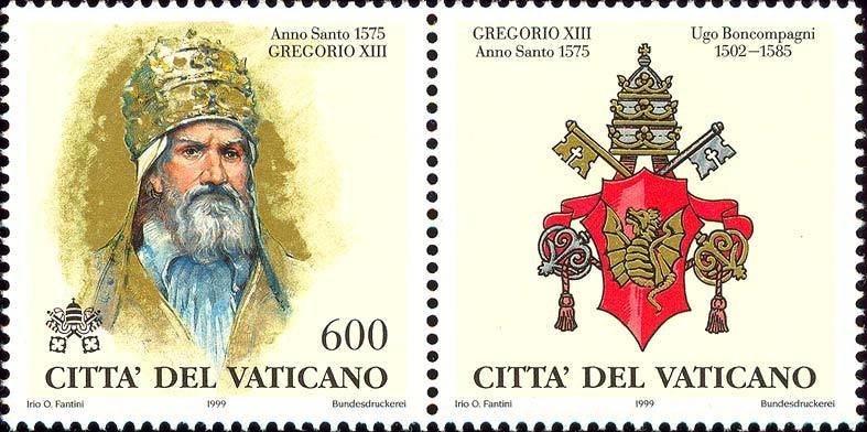 Visibility: public Image owner: none postage 3/23/1999 600(l) multi issue=Popes of the Holy Years 1550-1725 d=Gregory XIII unwmk perf=13.75 Crops No visible images cropped from this one. Measurements Resolution is unknown. Source Source name: Colnect File URL: http://i.colnect.net/b/1018/767/Gregory-XIII-1575.jpg Uploaded September 4, 2014, 8:49 pm by Stan Shebs |