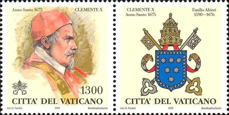 Visibility: public Image owner: none postage 3/23/1999 1500l multi issue=Popes of the Holy Years 1550-1725 d=Innocent XII unwmk perf=13.75 Crops No visible images cropped from this one. Measurements Resolution is unknown. Source Source name: Colnect File URL: http://i.colnect.net/b/1018/775/Clement-X-1675.jpg Uploaded September 4, 2014, 8:49 pm by Stan Shebs |