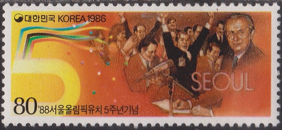 Visibility: public Image owner: none postage 9/30/1986 80w multi issue=5th Anniversary of Choice of Seoul as 1988 Olympic Games Host City d=Juan Antonio Samaranch wmk=winged circle Crops No visible images cropped from this one. Measurements Resolution is unknown. Source Source name: Colnect File URL: http://i.colnect.net/b/1435/880/Juan-Antonio-Samaranch-Korean-IOC-Delegation-1981.jpg Uploaded September 4, 2014, 9:56 pm by Stan Shebs |