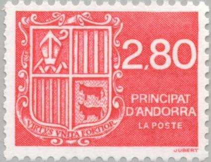 Visibility: public Image owner: none postage 8/7/1993 2.80fr red d=arms of Andorra (1993) unwmk perf=13x12.75 Crops No visible images cropped from this one. Measurements Resolution is unknown. Source Source name: Colnect File URL: http://i.colnect.net/b/142/154/Coat-of-arms.jpg Uploaded September 4, 2014, 10:58 pm by Stan Shebs |