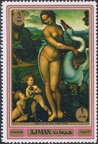 Visibility: public Image owner: none postage 6/5/1970 2dh multi issue=Paintings 1970 dt=paintings (1970 Ajman) unwmk Crops No visible images cropped from this one. Measurements Resolution is unknown. Source Source name: Colnect File URL: http://i.colnect.net/images/b/1292/519/Leda-and-the-swan-by-Leonardo-da-Vinci.jpg Uploaded June 14, 2013, 7:00 pm by Stan Shebs |