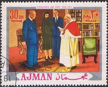 Visibility: public Image owner: none postage 9/30/1970 30dh multi issue=Dwight David Eisenhower unwmk Crops No visible images cropped from this one. Measurements Resolution is unknown. Source Source name: Colnect File URL: http://i.colnect.net/images/b/1292/520/Eisenhower-and-Pope-John-XXIII.jpg Uploaded June 14, 2013, 7:00 pm by Stan Shebs |