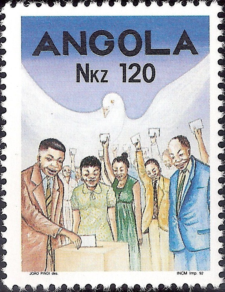 Visibility: public Image owner: none postage 10/27/1992 120Kz multi issue=1st Free Elections in Angola unwmk Crops No visible images cropped from this one. Measurements Resolution is unknown. Source Source name: Colnect File URL: http://i.colnect.net/b/1118/149/1st-Free-Elections-in-Angola.jpg Uploaded September 5, 2014, 3:49 pm by Stan Shebs |