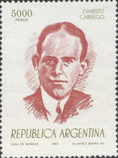 Visibility: public Image owner: none postage 3/26/1983 5000p ol&brnred dt=authors (1983 Argentina) d=Evaristo Carriego unwmk perf=13.75 Crops No visible images cropped from this one. Measurements Resolution is unknown. Source Source name: Colnect File URL: http://i.colnect.net/b/1607/183/Evaristo-Carriego-1883-1912.jpg Uploaded September 5, 2014, 4:30 pm by Stan Shebs |