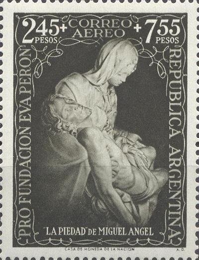 Visibility: public Image owner: none airmail semipostal 12/22/1951 2.45p+7.55p grayol issue=Eva Perón Foundation unwmk Crops No visible images cropped from this one. Measurements Resolution is unknown. Source Source name: Colnect File URL: http://i.colnect.net/b/1559/504/Eva-Perón-Foundation.jpg Uploaded September 5, 2014, 4:35 pm by Stan Shebs |