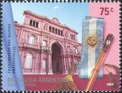 Visibility: public Image owner: none postage 9/6/2003 75c multi dt=Argentine history (2003) d=Presidential Inauguration Ceremony unwmk perf=14 Crops No visible images cropped from this one. Measurements Resolution is unknown. Source Source name: Colnect File URL: http://i.colnect.net/b/1256/910/Presidential-sash-and-staff-Casa-Rosada.jpg Uploaded September 5, 2014, 4:39 pm by Stan Shebs |