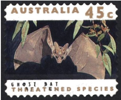 Visibility: public Image owner: none postage 1/2/1992 45c multi issue=1992 dt=Threatened Species d=ghost bat var=phosphor only on animals unwmk Crops No visible images cropped from this one. Measurements Resolution is unknown. Source Source name: Colnect File URL: http://i.colnect.net/b/1412/846/Ghost-Bat-Macroderma-gigas.jpg Uploaded August 12, 2014, 5:30 pm by Stan Shebs |