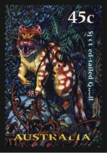 Visibility: public Image owner: none postage 10/1/1997 45c multi dt=nocturnal animals (1997) d=Quoll unwmk perf=14.25 Crops No visible images cropped from this one. Measurements Resolution is unknown. Source Source name: Colnect File URL: http://i.colnect.net/b/1473/314/Spotted-tailed-Quoll-Dasyurus-maculatus.jpg Uploaded August 12, 2014, 6:47 pm by Stan Shebs |