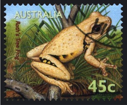 Visibility: public Image owner: none postage 10/1/1999 45c multi issue=Pond Life d=Roth's tree frog from ms unwmk Crops No visible images cropped from this one. Measurements Resolution is unknown. Source Source name: Colnect File URL: http://i.colnect.net/b/1473/341/Roth-s-Tree-Frog-Litoria-rothii-.jpg Uploaded August 12, 2014, 8:43 pm by Stan Shebs |