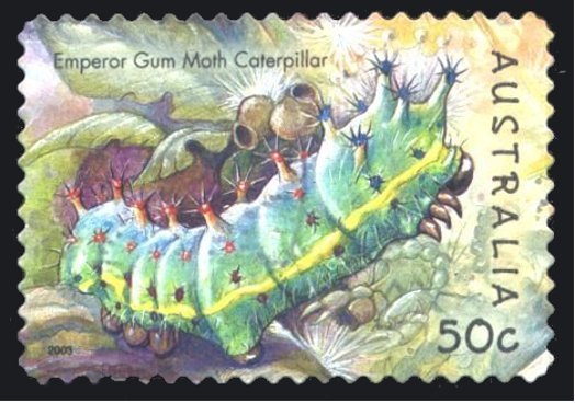 Visibility: public Image owner: none postage 9/24/2003 50c multi dt=bugs & butterflies d=Emperor Gum Moth Caterpillar unwmk Crops No visible images cropped from this one. Measurements Resolution is unknown. Source Source name: Colnect File URL: http://i.colnect.net/b/1475/797/Emperor-Gum-Moth-Opodiphthera-eucalypti.jpg Uploaded August 12, 2014, 9:31 pm by Stan Shebs |
