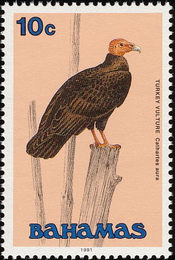 Visibility: public Image owner: none postage 2/4/1991 10c multi issue=1991 dt=birds (1991 Bahamas) d=turkey vulture Cathartes aura (1991) wmk=crown & script CA spiral perf=14 Crops No visible images cropped from this one. Measurements Resolution is unknown. Source Source name: Colnect File URL: http://i.colnect.net/b/576/819/Turkey-Vulture-Cathartes-aura.jpg Uploaded September 5, 2014, 5:25 pm by Stan Shebs |