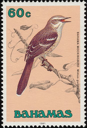 Visibility: public Image owner: none postage 2/4/1991 60c multi issue=1991 dt=birds (1991 Bahamas) d=Mimus gundlachii wmk=crown & script CA spiral perf=14 Crops No visible images cropped from this one. Measurements Resolution is unknown. Source Source name: Colnect File URL: http://i.colnect.net/b/576/828/Bahama-Mockingbird-Mimus-gundlachii.jpg Uploaded September 5, 2014, 5:26 pm by Stan Shebs |