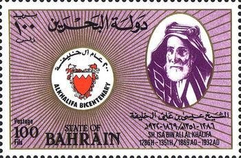 Visibility: public Image owner: none postage 12/16/1983 100f multi issue=200th jubilee of the Al-Khalifa dynasty d=Isa bin Ali Al-Khalifa unwmk Crops No visible images cropped from this one. Measurements Resolution is unknown. Source Source name: Colnect File URL: http://i.colnect.net/images/b/862/434/Isa-bin-Ali-Al-Khalifa.jpg Uploaded September 5, 2014, 5:32 pm by Stan Shebs |