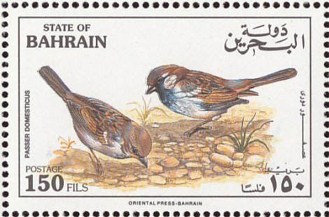 Visibility: public Image owner: none postage 9/15/1991 150f multi dt=indigenous birds of Bahrain d=house sparrow - Passer domesticus unwmk perf=14.75 Crops No visible images cropped from this one. Measurements Resolution is unknown. Source Source name: Colnect File URL: http://i.colnect.net/images/b/1463/490/House-Sparrow-Passer-Domesticus.jpg Uploaded September 5, 2014, 5:43 pm by Stan Shebs |