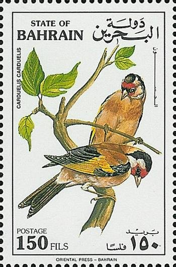Visibility: public Image owner: none postage 3/21/1992 150f multi dt=migratory birds of Bahrain d=European goldfinch - Carduelis carduelis unwmk perf=14.75 Crops No visible images cropped from this one. Measurements Resolution is unknown. Source Source name: Colnect File URL: http://i.colnect.net/images/b/854/619/European-Goldfinch-Carduelis-carduelis.jpg Uploaded September 5, 2014, 5:44 pm by Stan Shebs |