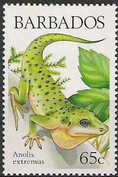 Visibility: public Image owner: none postage 6/13/1988 65c multi dt=lizards of Barbados d=Anolis extremus wmk=crown & CA spiral perf=14 Crops No visible images cropped from this one. Measurements Resolution is unknown. Source Source name: Colnect File URL: http://i.colnect.net/b/1497/064/Barbados-Anole-Anolis-extremus.jpg Uploaded September 5, 2014, 5:49 pm by Stan Shebs |