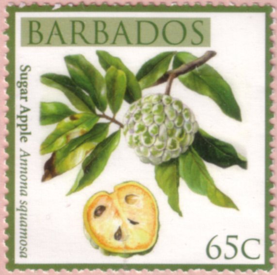 Visibility: public Image owner: none postage 2/7/2011 65c multi issue=2011 dt=Barbados Local fruits d=sugar apple Annona squamosa (2011) unwmk Crops No visible images cropped from this one. Measurements Resolution is unknown. Source Source name: Colnect File URL: http://i.colnect.net/b/1288/089/Sugar-apple.jpg Uploaded September 5, 2014, 5:51 pm by Stan Shebs |